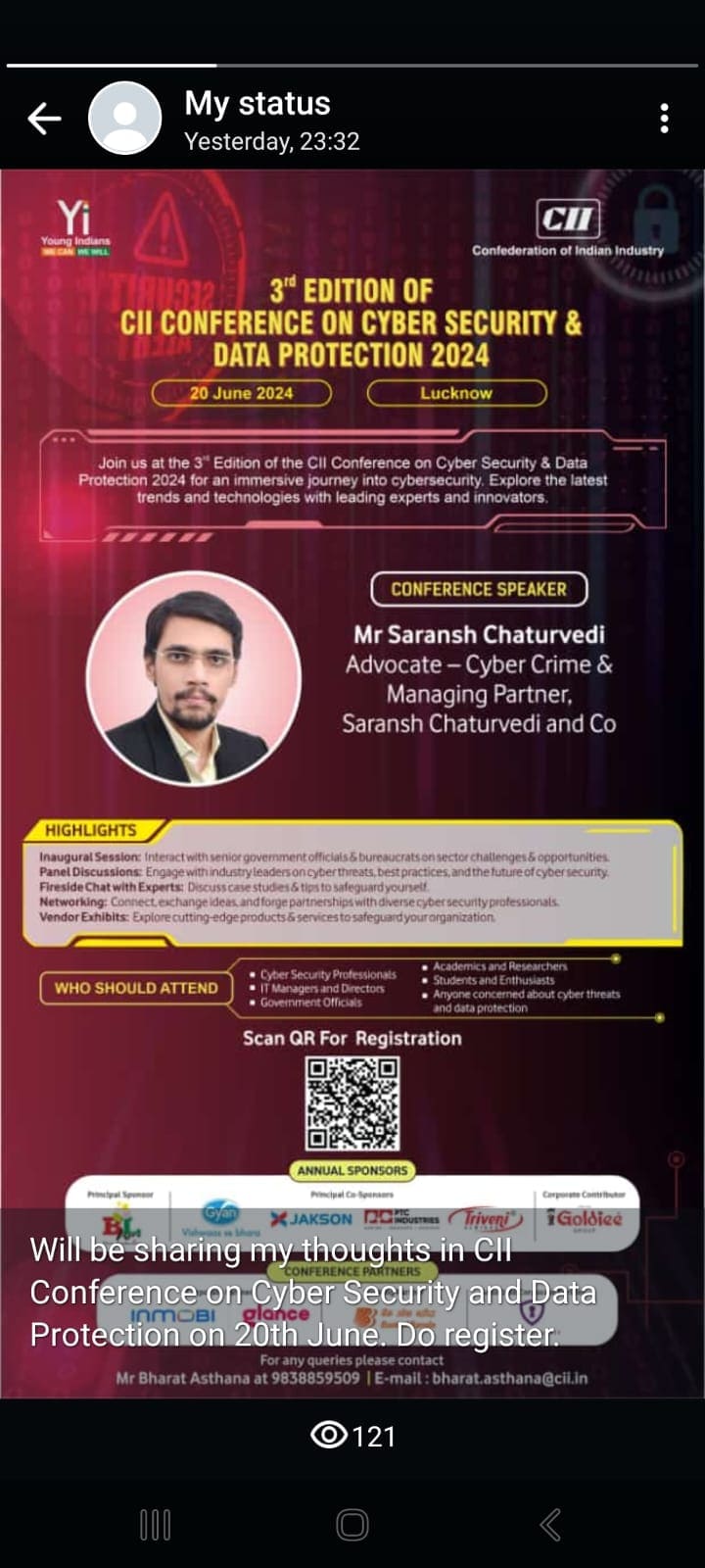 The session resonated strongly with entrepreneurs, business leaders, and technology professionals. Participants appreciated the balanced approach Saransh offered—combining legal, practical, and strategic perspectives. His address made clear that cyber security is not just about safeguarding data but about ensuring trust, continuity, and long-term growth in an increasingly digital economy.
