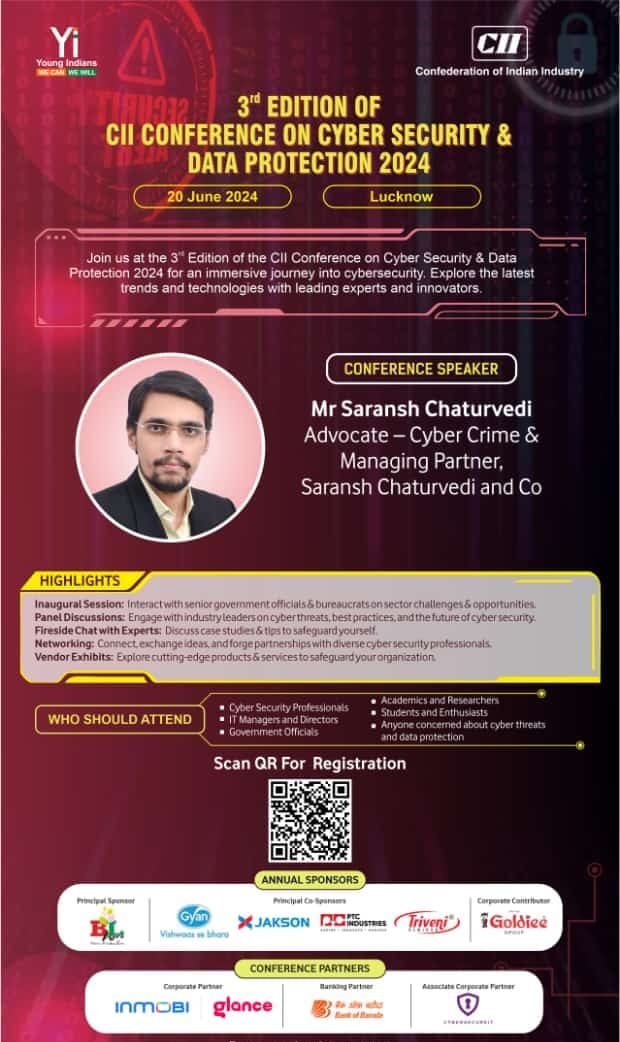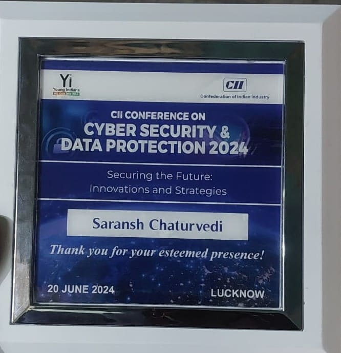 At the CII Cyber Security Program, Saransh Chaturvedi was invited to deliver an address on one of the most critical challenges of the modern era—cyber security. As digital technologies increasingly define how businesses, governments, and individuals operate, the threats associated with cyber vulnerabilities have become more complex, frequent, and damaging. In his session, Saransh emphasized that cyber security is no longer a purely technical issue but a multi-dimensional challenge that intersects with law, policy, business continuity, and public trust.