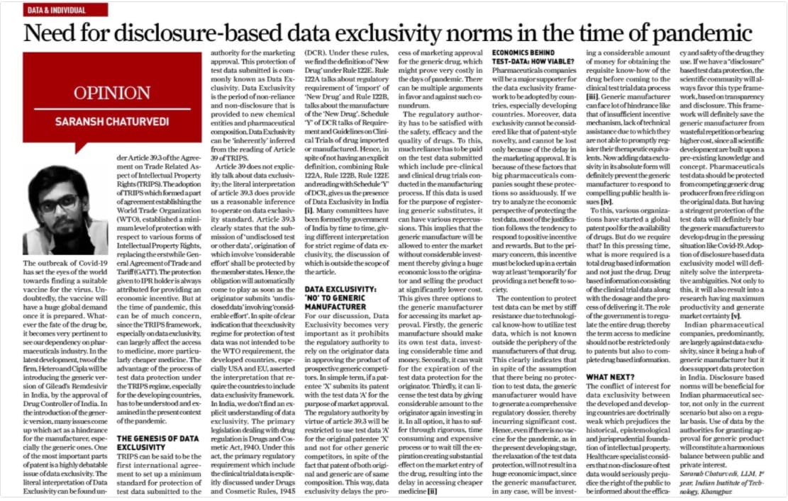 Need for Disclosure-based data exclusivity norms in the time of pandemic