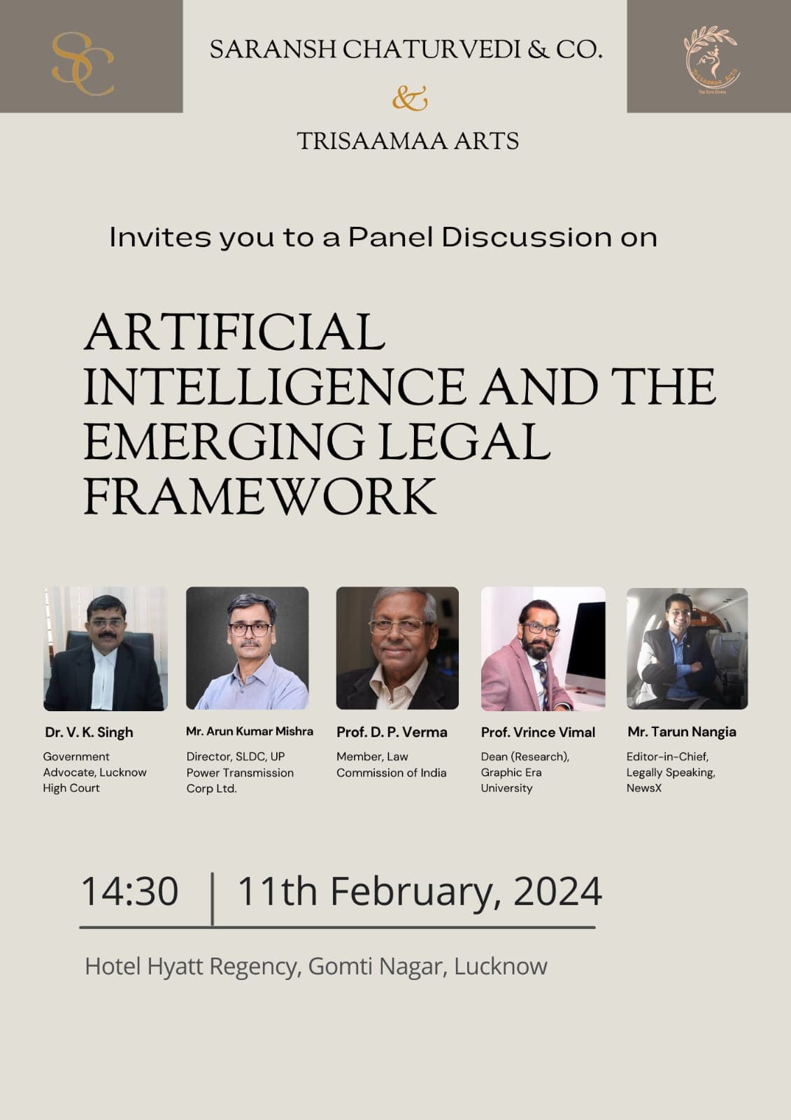 Saransh Chaturvedi & Co. organized a landmark panel discussion on Artificial Intelligence (AI) and Emerging Legal Frameworks in Lucknow, bringing together a distinguished group of legal experts, technology professionals, policymakers, and industry leaders. The program provided a critical platform for in-depth dialogue on the rapidly evolving intersection of AI and law, highlighting how technological advancements are reshaping industries, governance, and regulatory approaches. Participants had the unique opportunity to engage with thought leaders, explore emerging legal challenges, and gain actionable insights into the responsible adoption and regulation of AI in both private and public sectors.